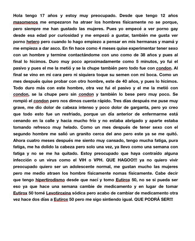 Aparte de todo lo que digo en la imagen que anexo me acaban de salir unas ronchas en la panza y pecho, muy pocas y no me duelen. Hace como un año, antes de tener sexo, ya me habían salido bastantes y me recetaron Icaden y se me quitaron, pero no se si sea lo mismo ahora.