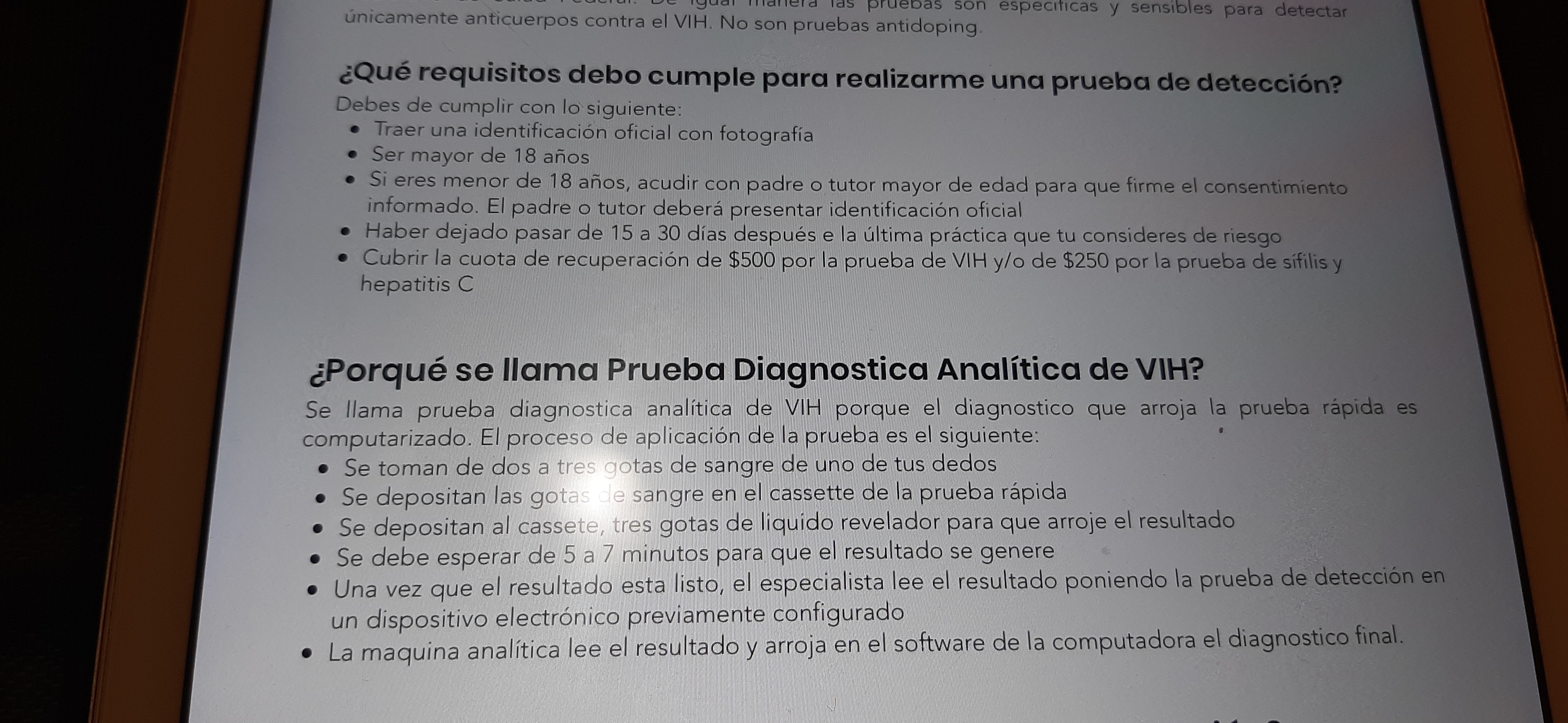 La llaman Prueba Diagnostica Analítica de VIH. Me mencionaron que no son iguales a las pruebas rápidas comunes y que funcionan después de los 15 días de la situación de riesgo.