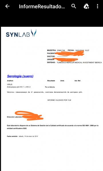 Me acaba de llegar la prueba realizada ayer. Extraccion sangre. Han pasado más de 55 dias de la ultima exposición. Asi que deduzco que estoy sano.